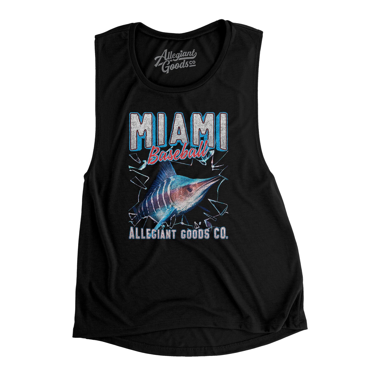 Miami Baseball Throwback Mascot Women's Flowey Scoopneck Muscle Tank