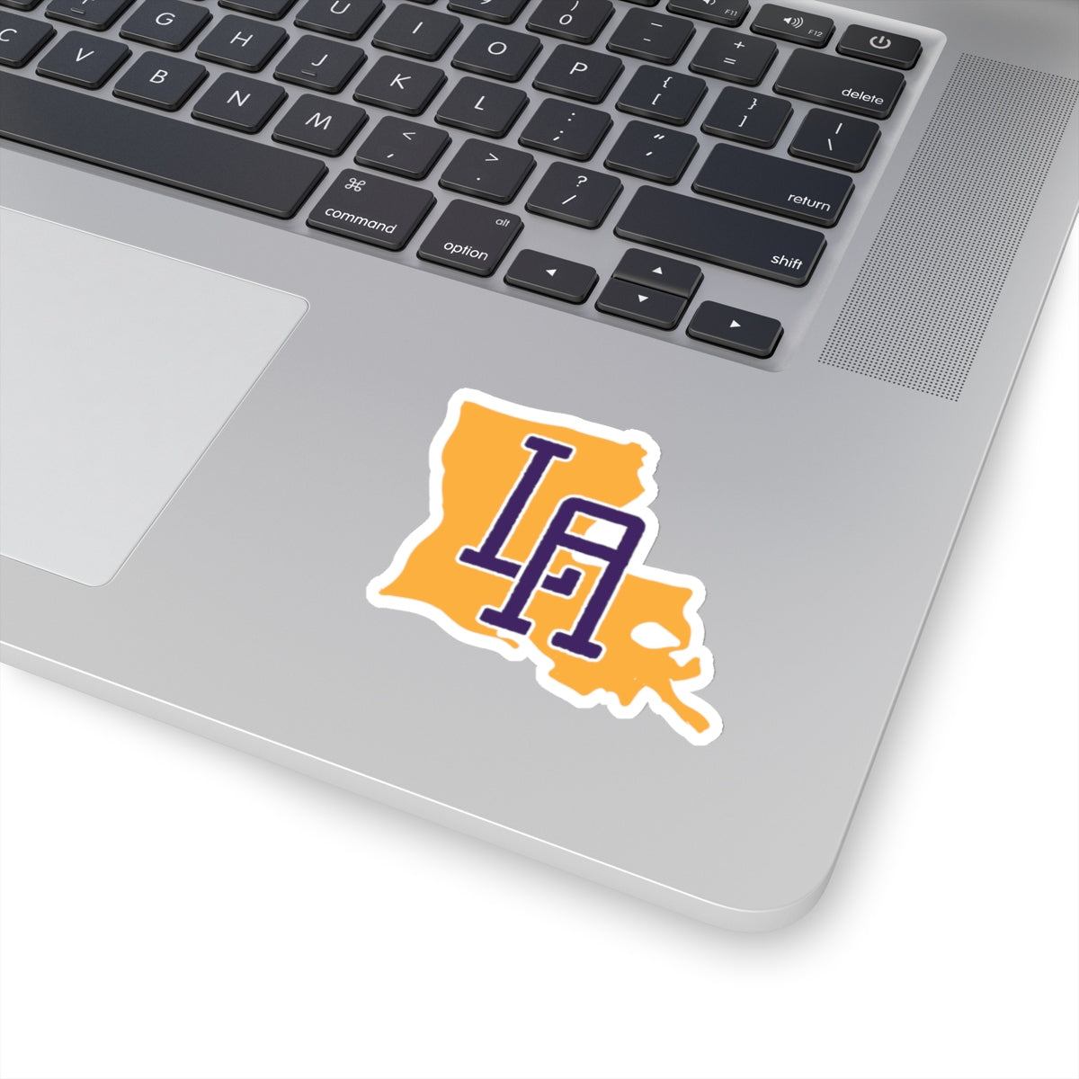 Show your pride for the Pelican State with this purple and yellow sticker.