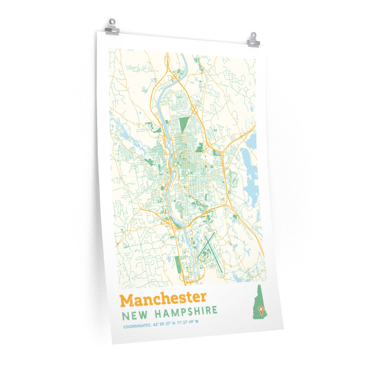 Put your love for Manchester, New Hampshire on display with a street map poster!