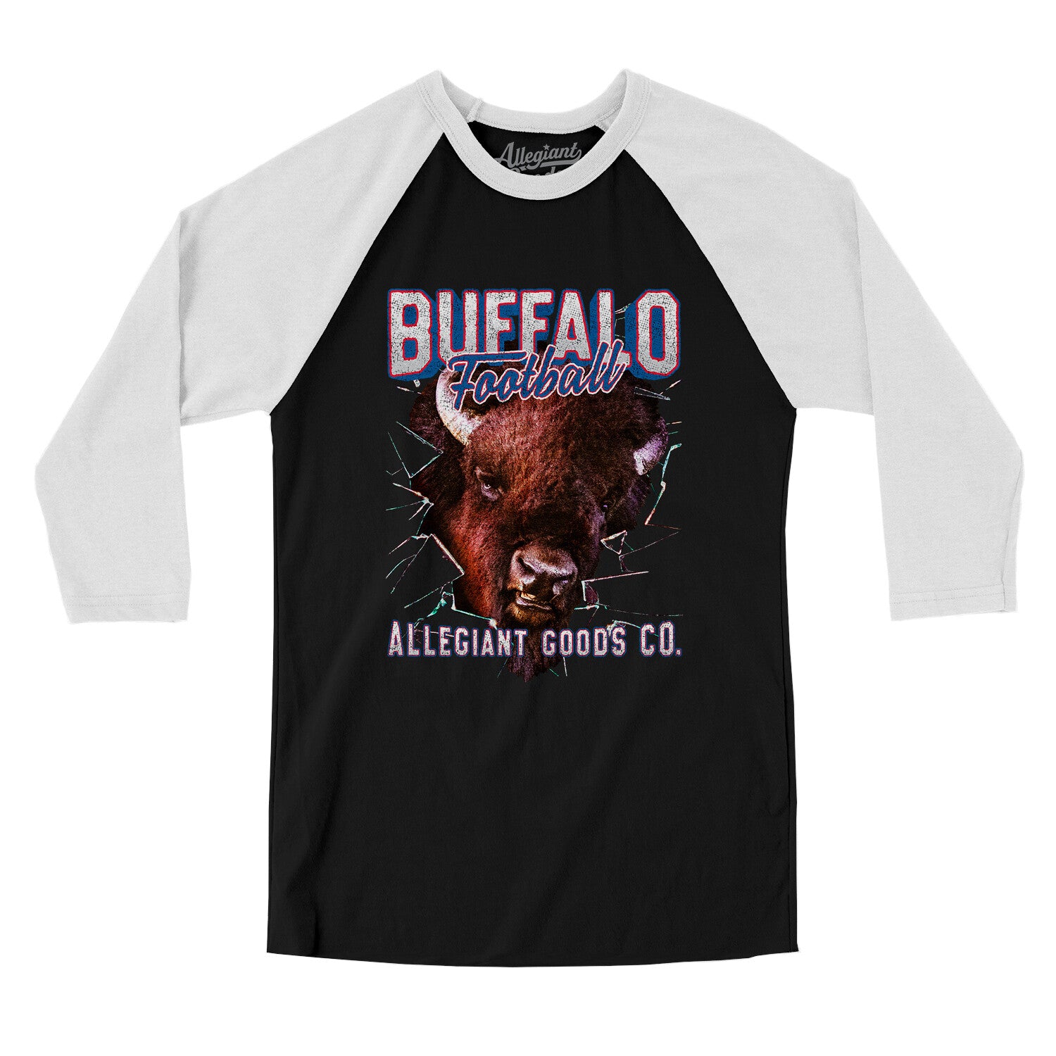 Buffalo Football Throwback Mascot Men/Unisex Raglan 3/4 Sleeve T-Shirt