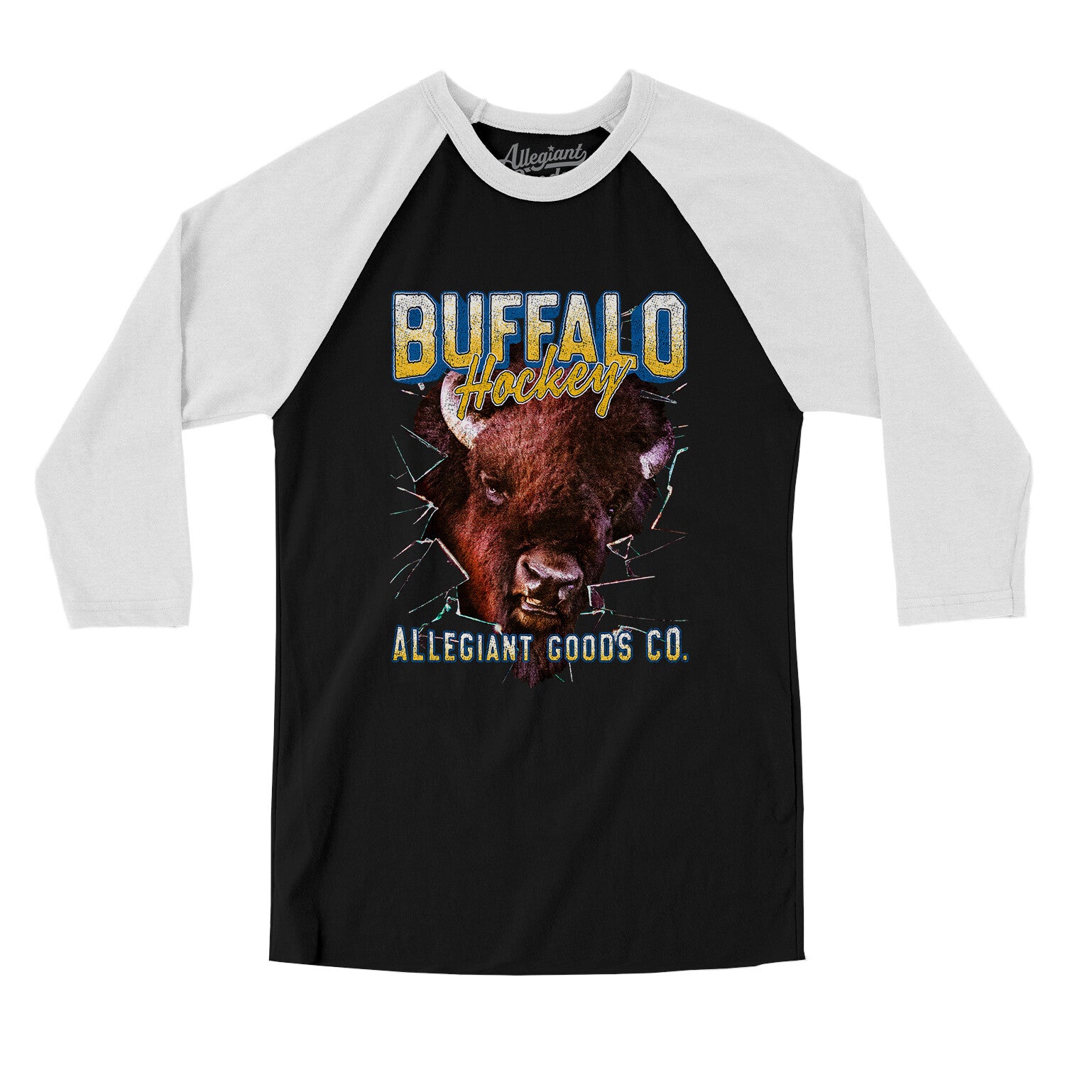 Buffalo Hockey Throwback Mascot Men/Unisex Raglan 3/4 Sleeve T-Shirt