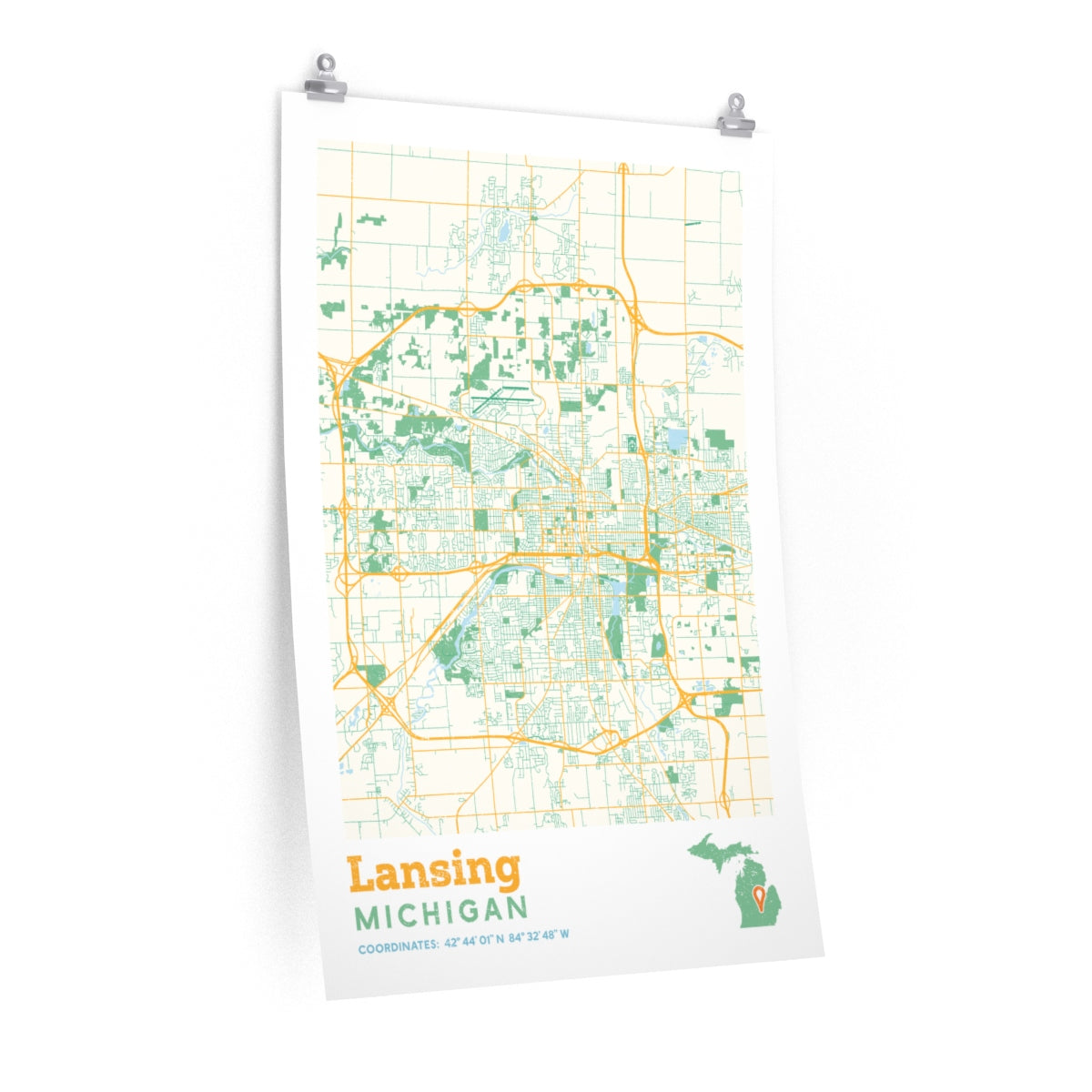 Put your love for Lansing, Michigan on display with a street map poster!