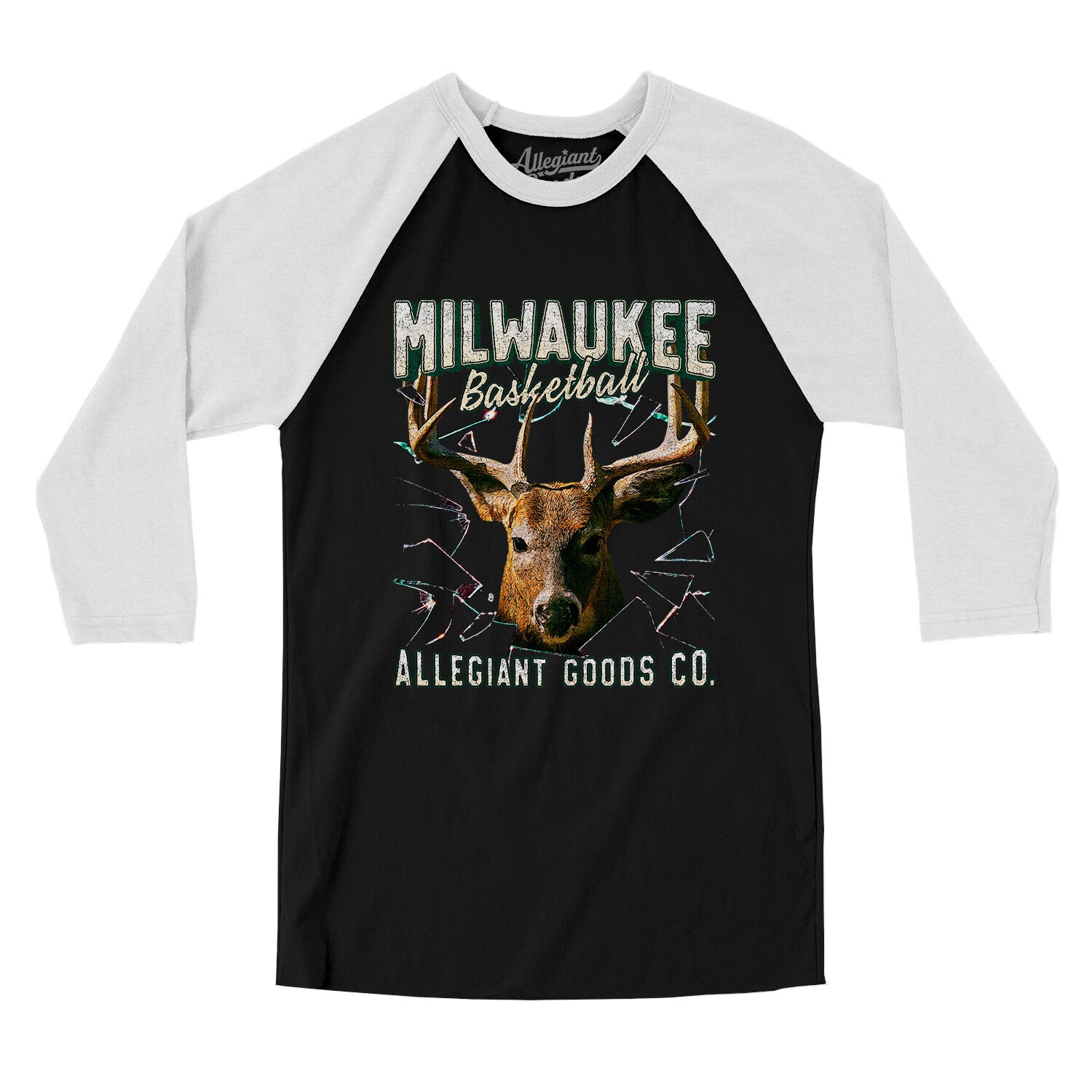 Milwaukee Basketball Throwback Mascot Men/Unisex Raglan 3/4 Sleeve T-Shirt